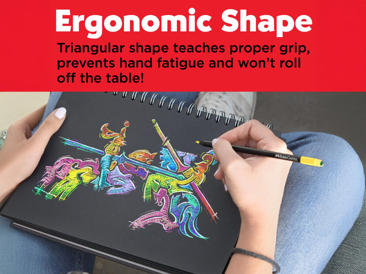 12 Black Edition Colored Pencils made with sleek black wood have a wonderfully smooth and vibrant color laydown, thanks to their super soft lead. The high pigmentation of the lead makes them versatile – ideal for drawing techniques on light, colored and dark paper.