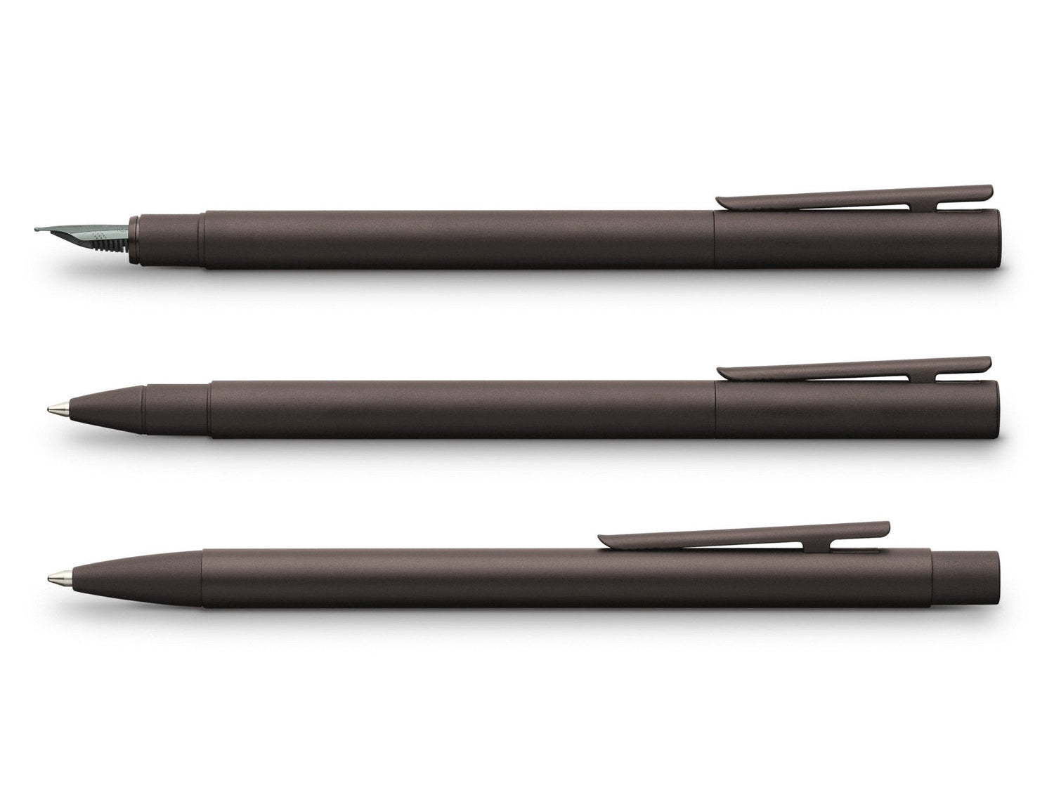 Faber Castell's Neo Slim line of writing instruments is sleek and slim, perfect for slipping into a pocket. The Neo Slim has a professional feel and reliable performance. The Gunmetal Collection is made of brushed aluminum with matching black fittings.