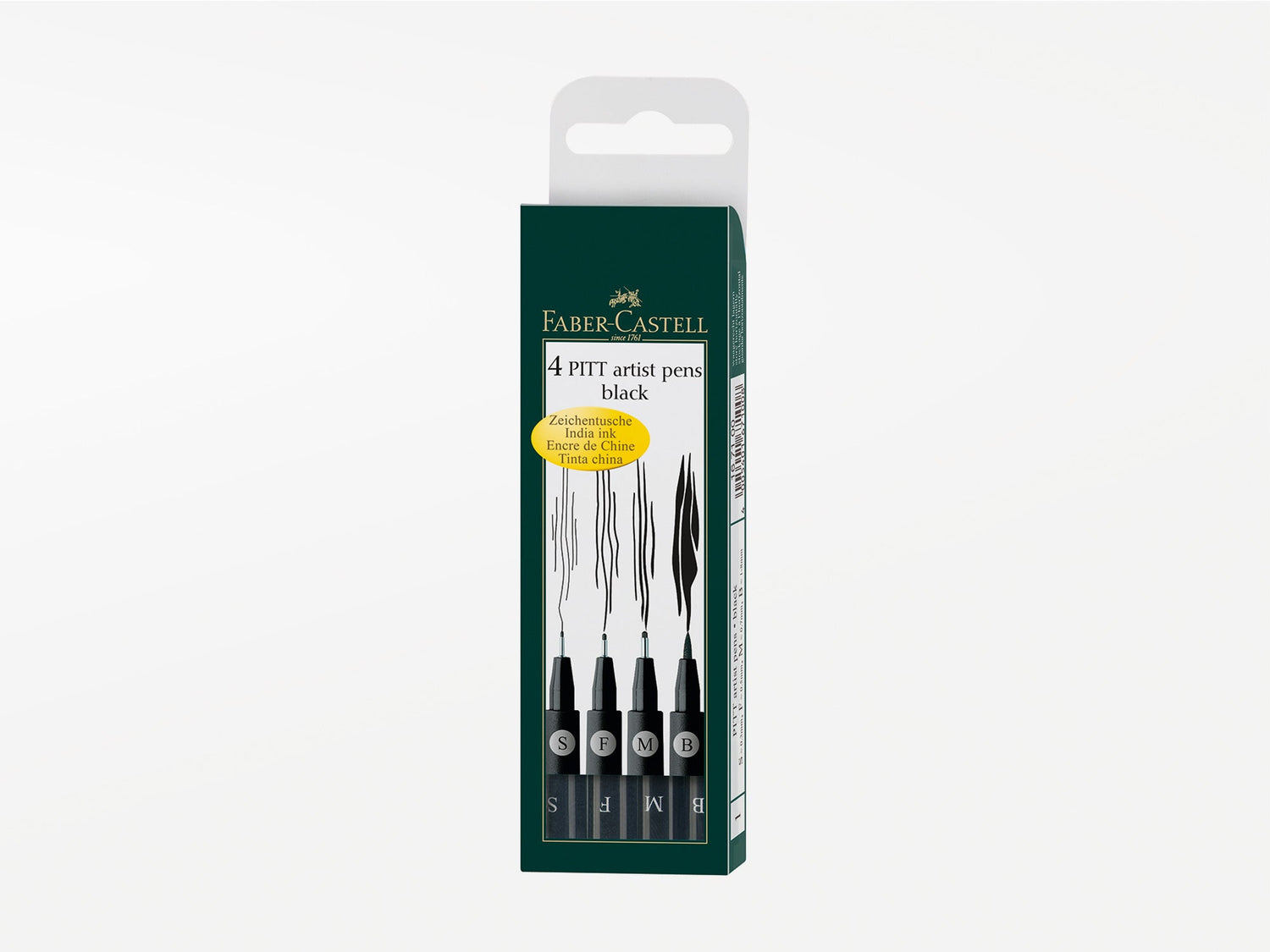 4 Black Pitt Artist Pens (Superfine, Fine, Medium and Brush Tips)