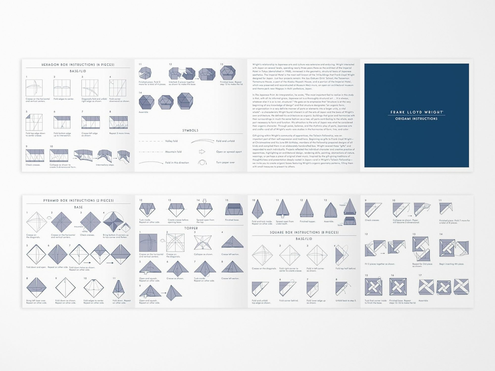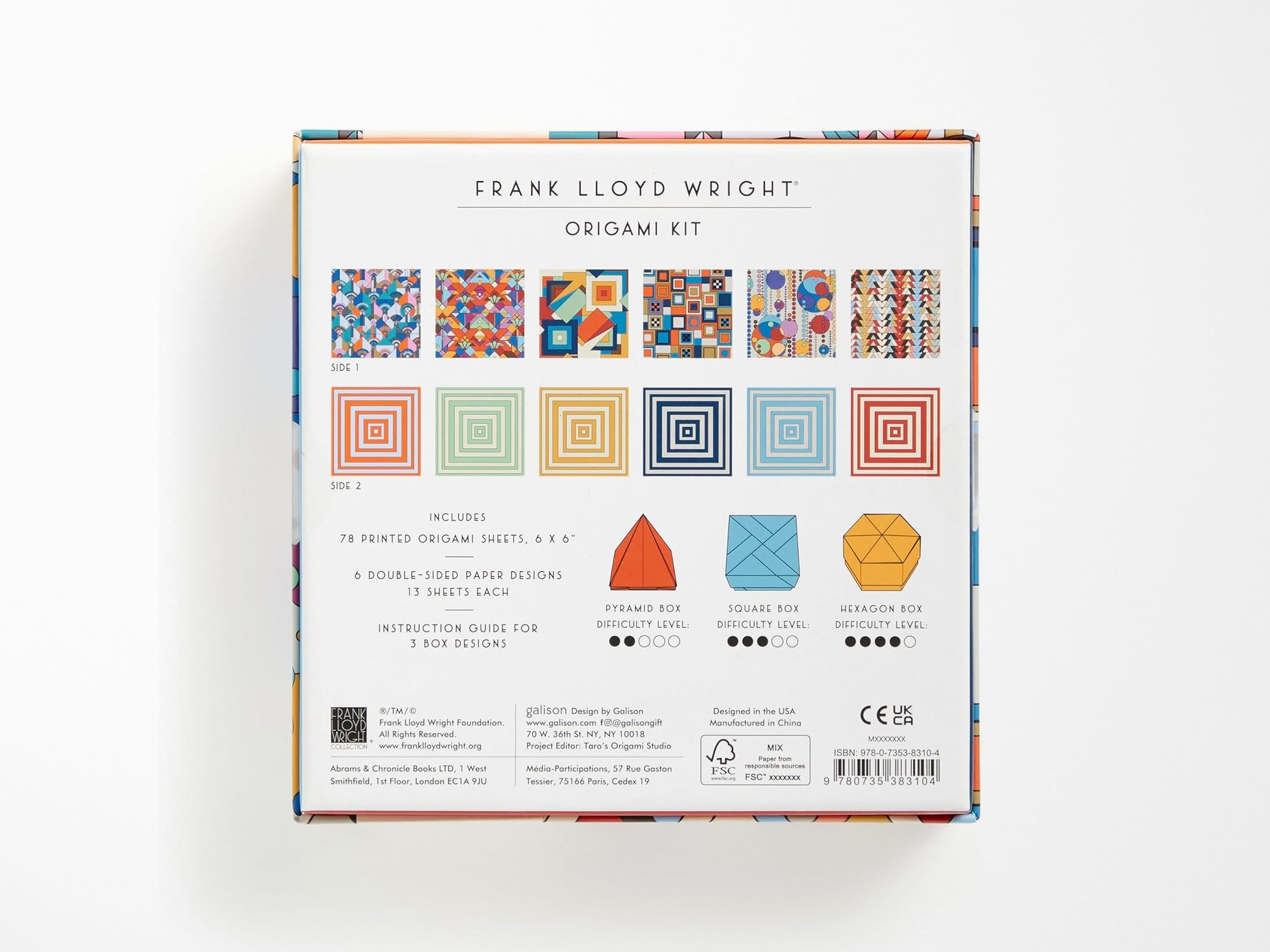 Whether you're folding origami cranes, modular structures, or abstract sculptures, this kit invites you to immerse yourself in the world of Frank Lloyd Wright and discover the beauty of architectural origami. Whether you're folding alone or with friends and family, this kit provides a fun and inspiring activity that celebrates the intersection of art and design.