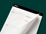 This tree-free A5 Daily Action Pad is an essential for any desk. This undated all-in-one Daily Action Pad tracks your schedule, tasks, goals, and notes every day. With a top flip binding, write or draw comfortably from any angle, and remove each sheet with ease along the micro-perforation. The unique, eco-friendly stone paper material is acid-free, bright white, and waterproof, with a premium look and feel.