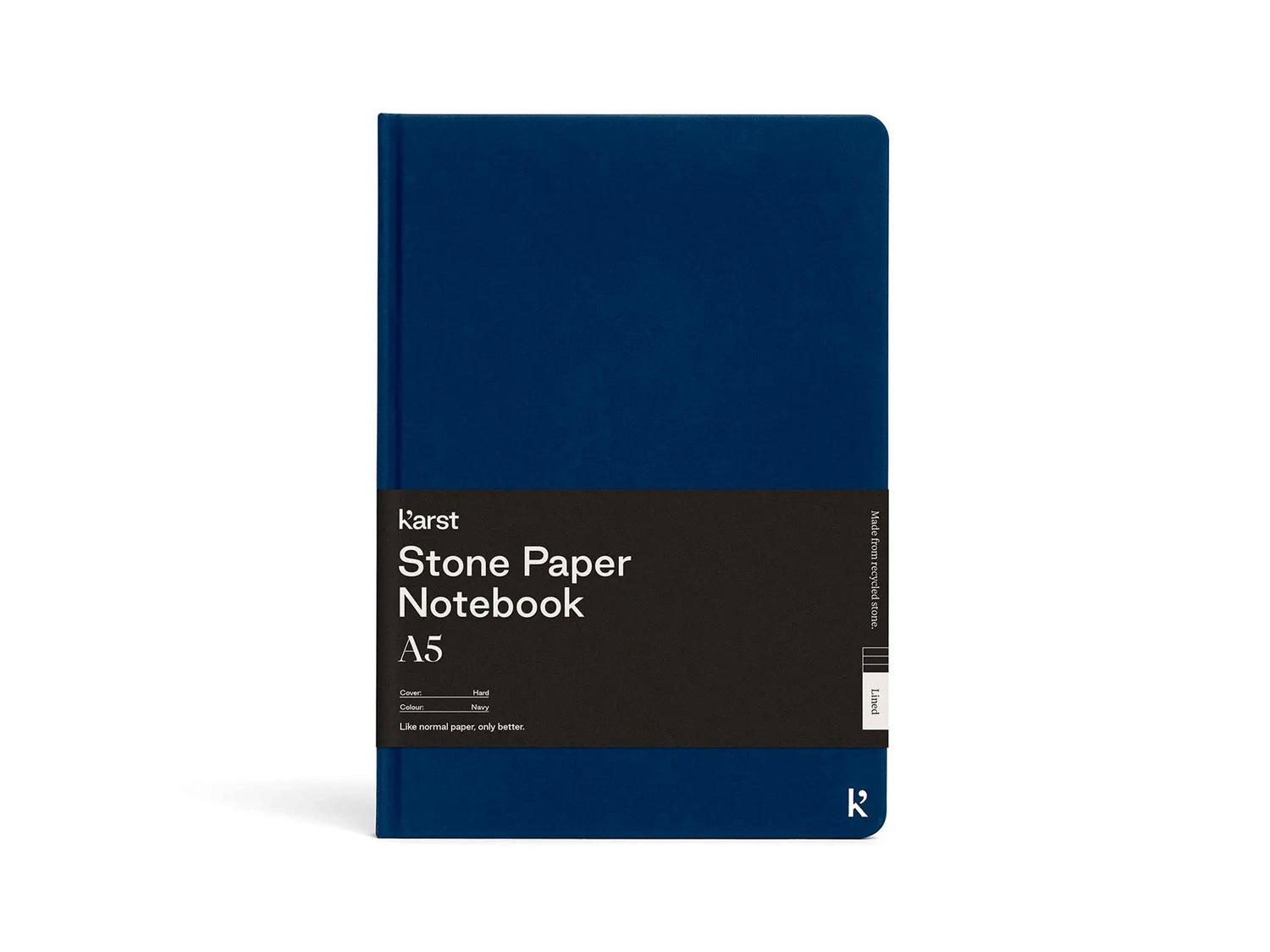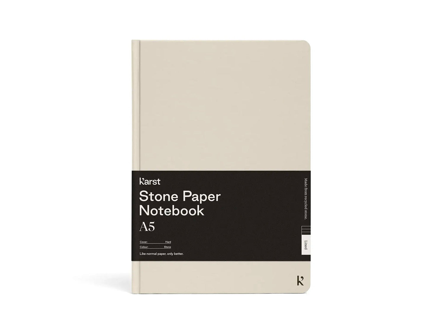 This tree-free A5 Hardcover Notebook is made from high-quality, sustainable, and recyclable stone paper. With an expandable back pocket, divider ribbon or bookmark, elastic band, and lay-flat binding.