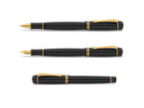 The high quality plastic body is trimmed in gold. The nib is steel, and the shiny black body is curvy and elegant. This pen is lightweight and fun to write with.