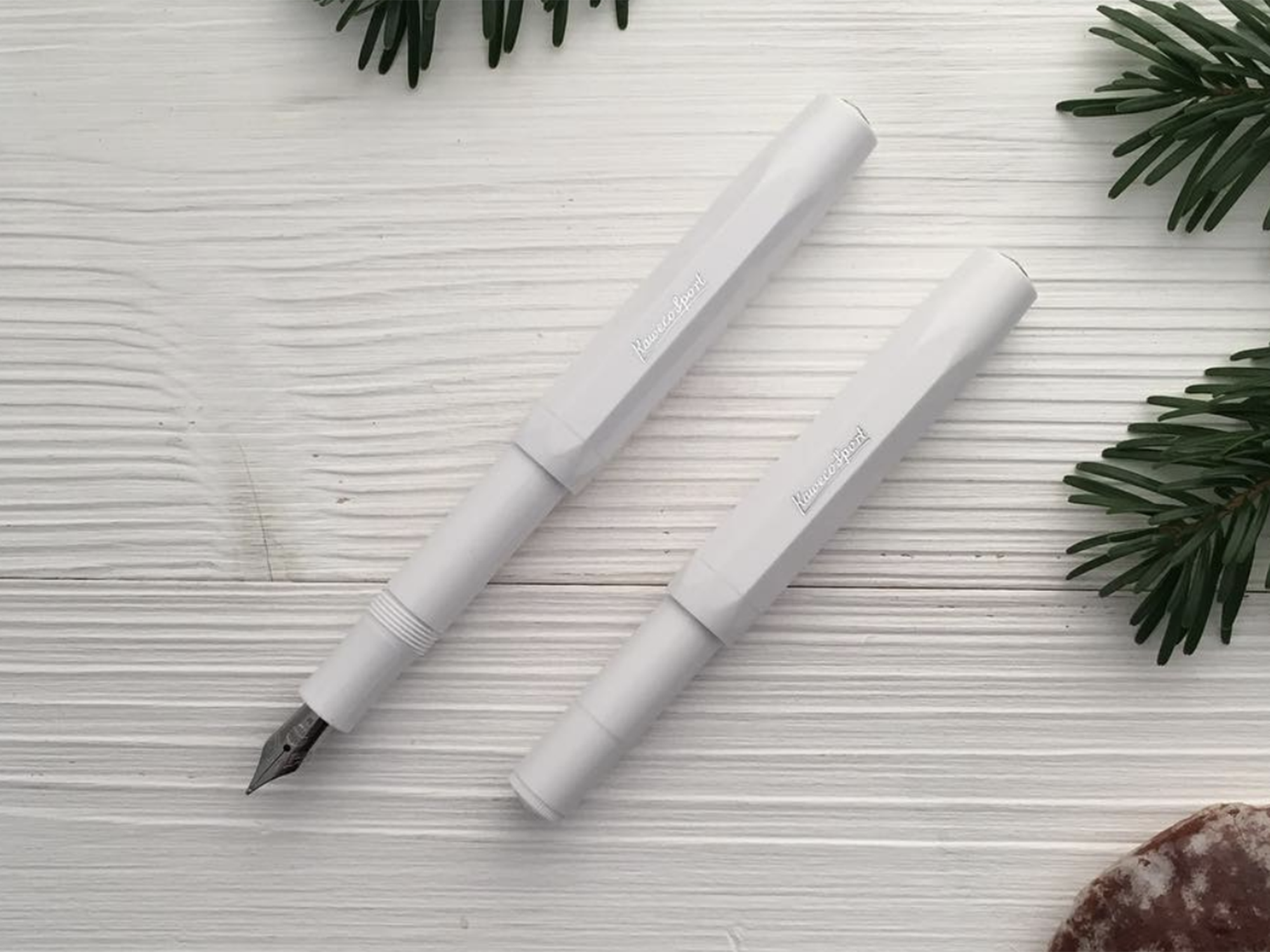 The beauty of the Kaweco Sport pen is the way it closes to be a compact palm-size, and when the cap is removed and posted on the end, it expands to a full size fountain pen. In a pocket or purse, this sturdy writing instrument can go everywhere with you. And it feels great to write with.
