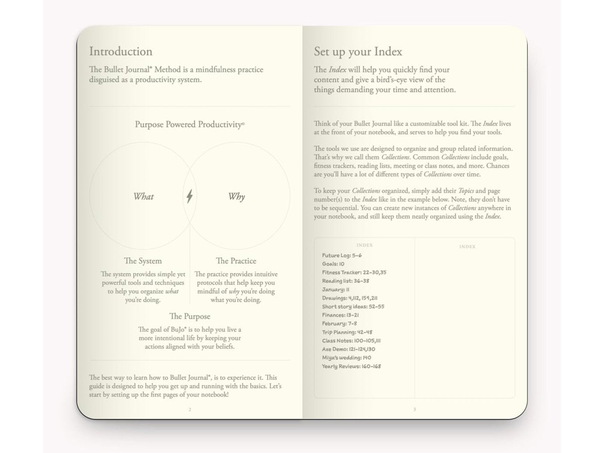The Bullet Journal is a totally customizable (and totally forgiving) organization system that adapts to your needs. It will be your to-do list, sketchbook, notebook, diary, and planner, but most likely, it will be all of the above.