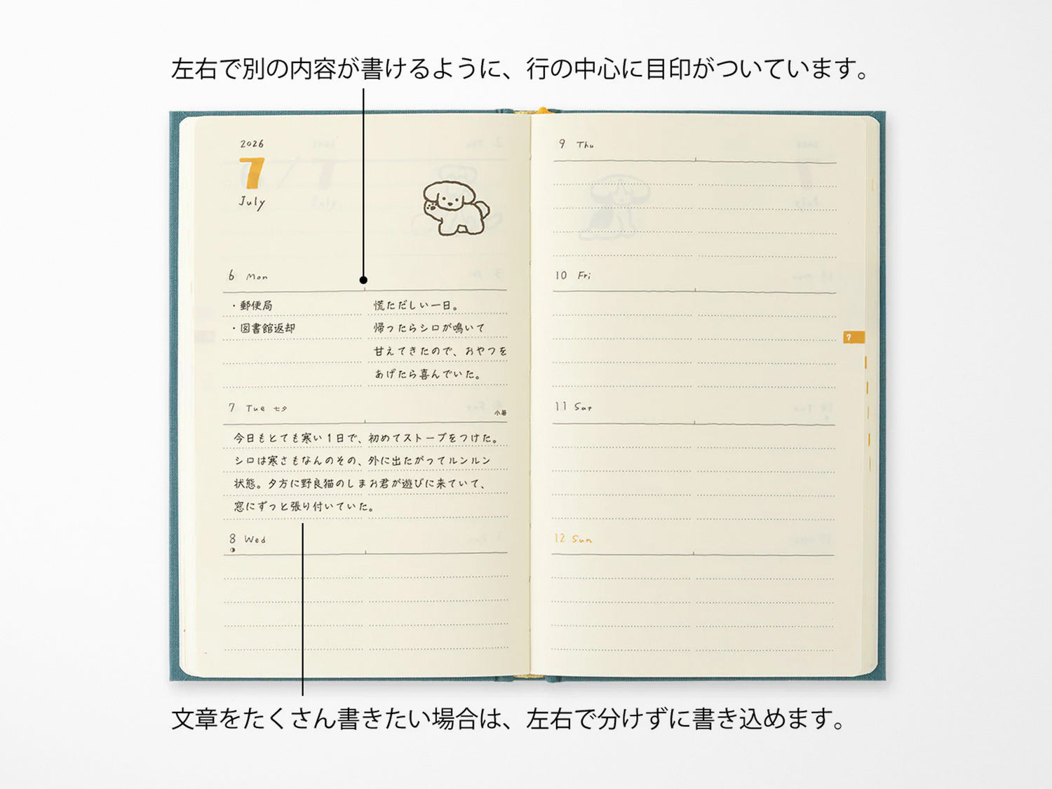 The pages are thread-sewn, allowing the diary to be open flat at 180 degrees for stress-free writing. It comes in a cloth hardback cover that is soft to touch. Designed like a sturdy book, it not only helps you keep track of your schedule for the year, but it can also be kept in a safe place after you’ve finished using it.