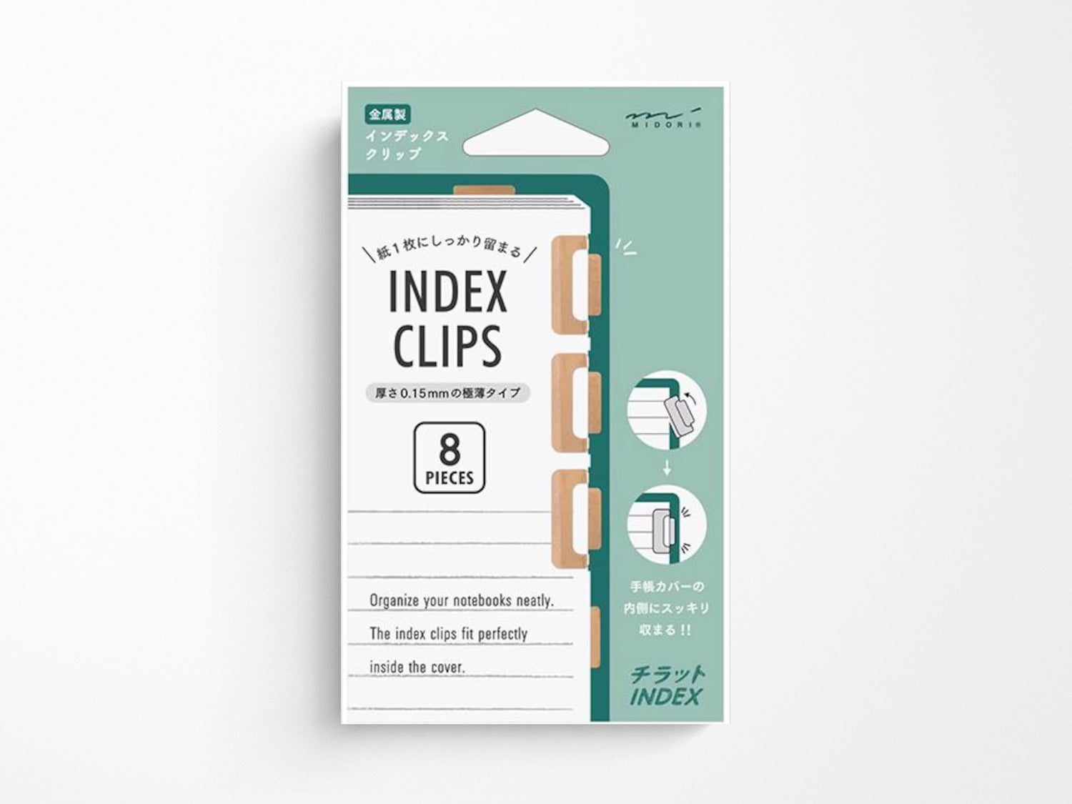Midori's Chiratto Index Clips are an ingenious solution for easily marking and finding your important pages. "Chiratto" means "a quick peek" in Japanese, and that's exactly what these clips offer: a quick glimpse of your sections without cluttering your notebook.