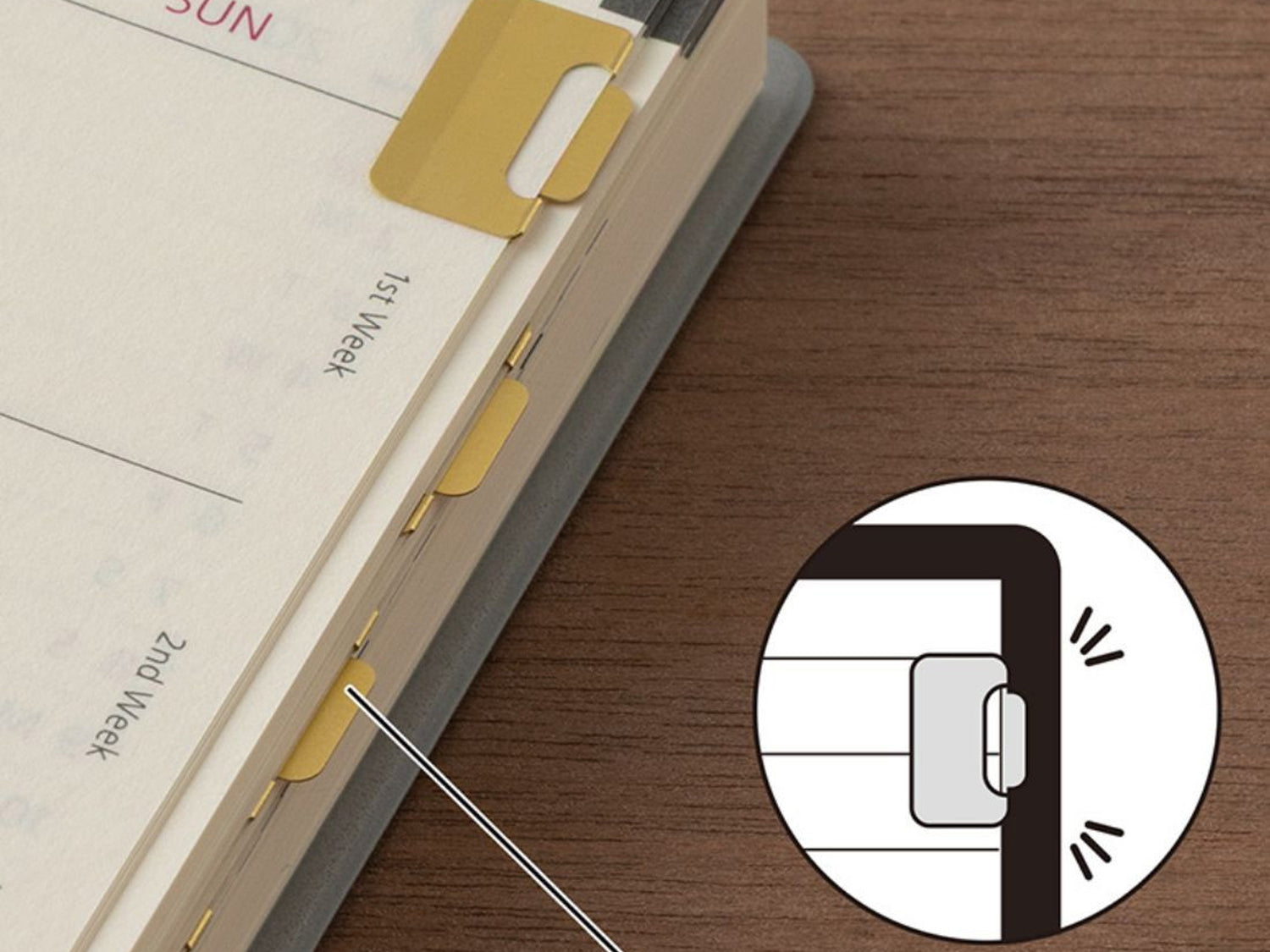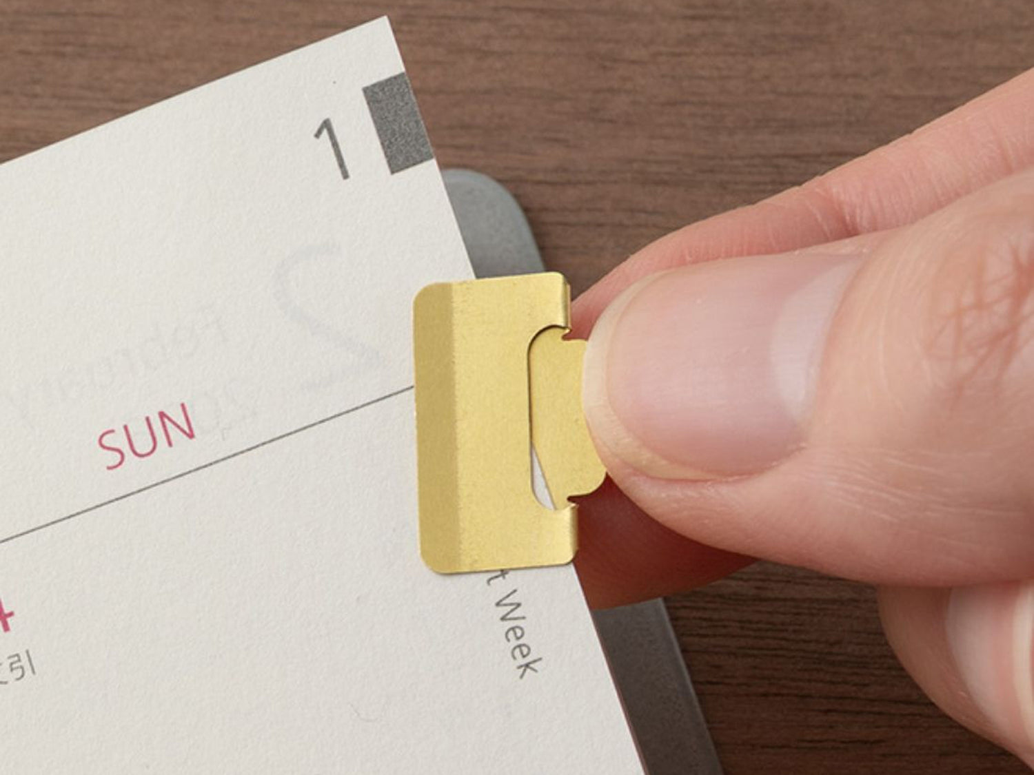 Midori Chiratto clips hold firmly to a single sheet of paper. They are made of extremely thin metal to mark your page in a planner or notebook. The simple design can be used either horizontally or vertically.