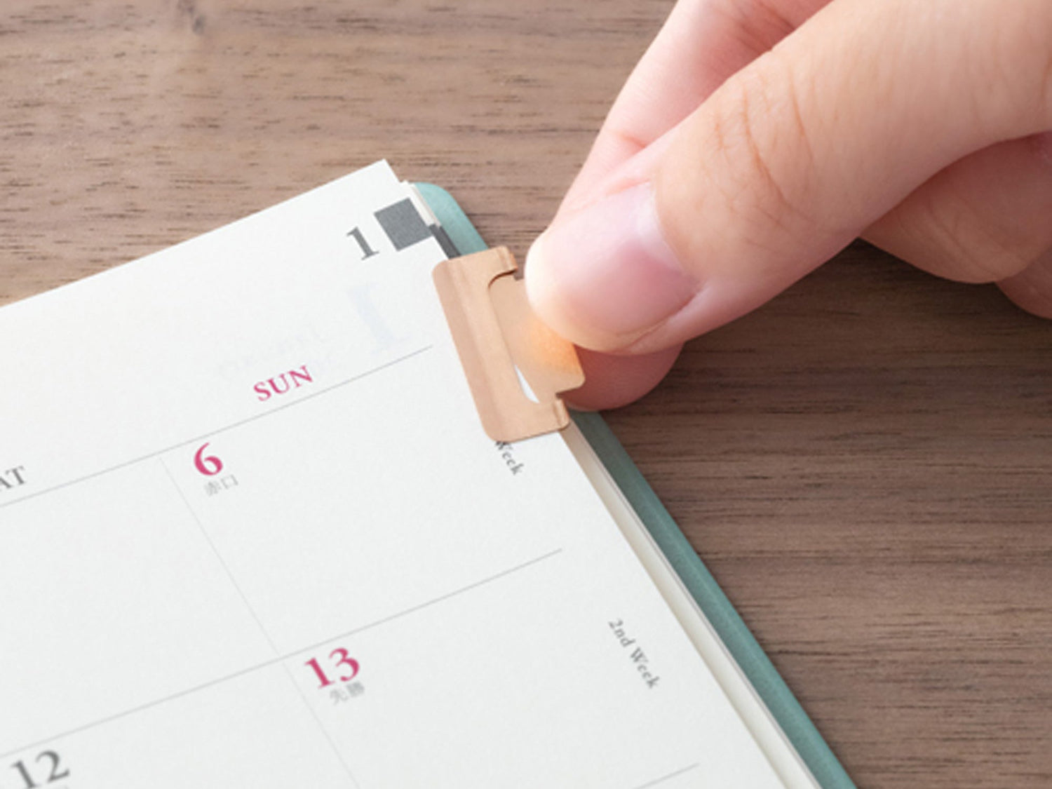 Midori Chiratto clips hold firmly to a single sheet of paper. They are made of extremely thin metal to mark your page in a planner or notebook. The simple design can be used either horizontally or vertically.