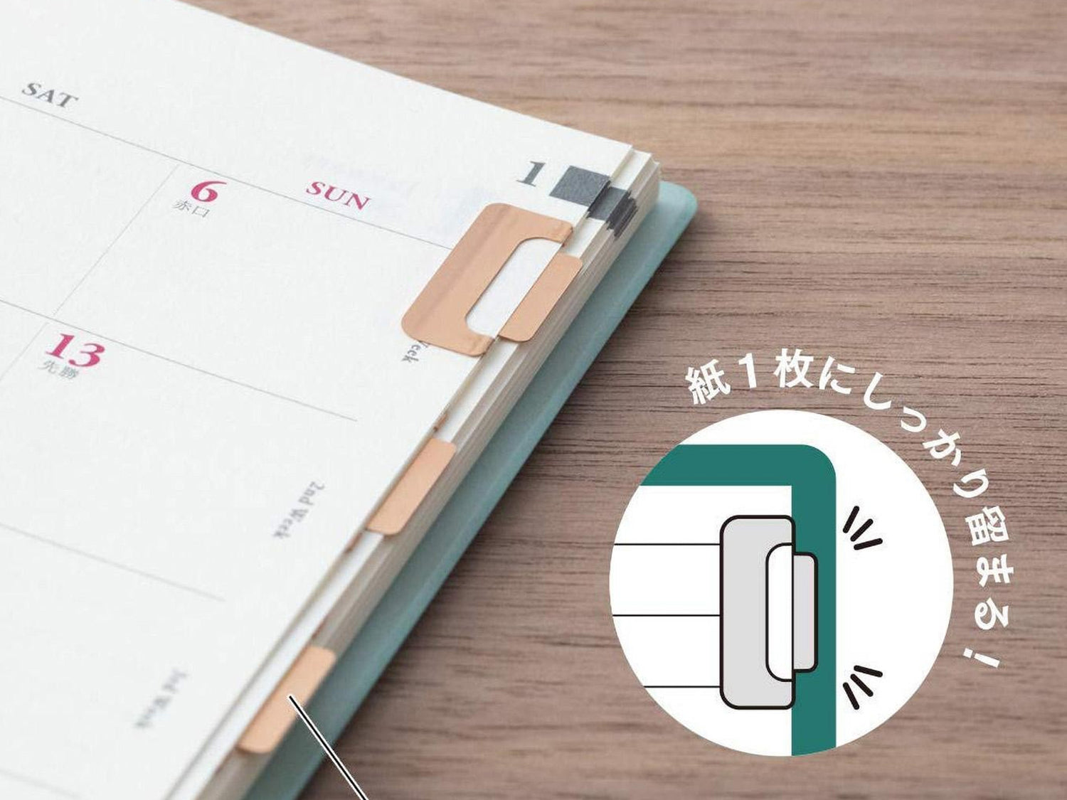 Midori Chiratto clips hold firmly to a single sheet of paper. They are made of extremely thin metal to mark your page in a planner or notebook. The simple design can be used either horizontally or vertically.