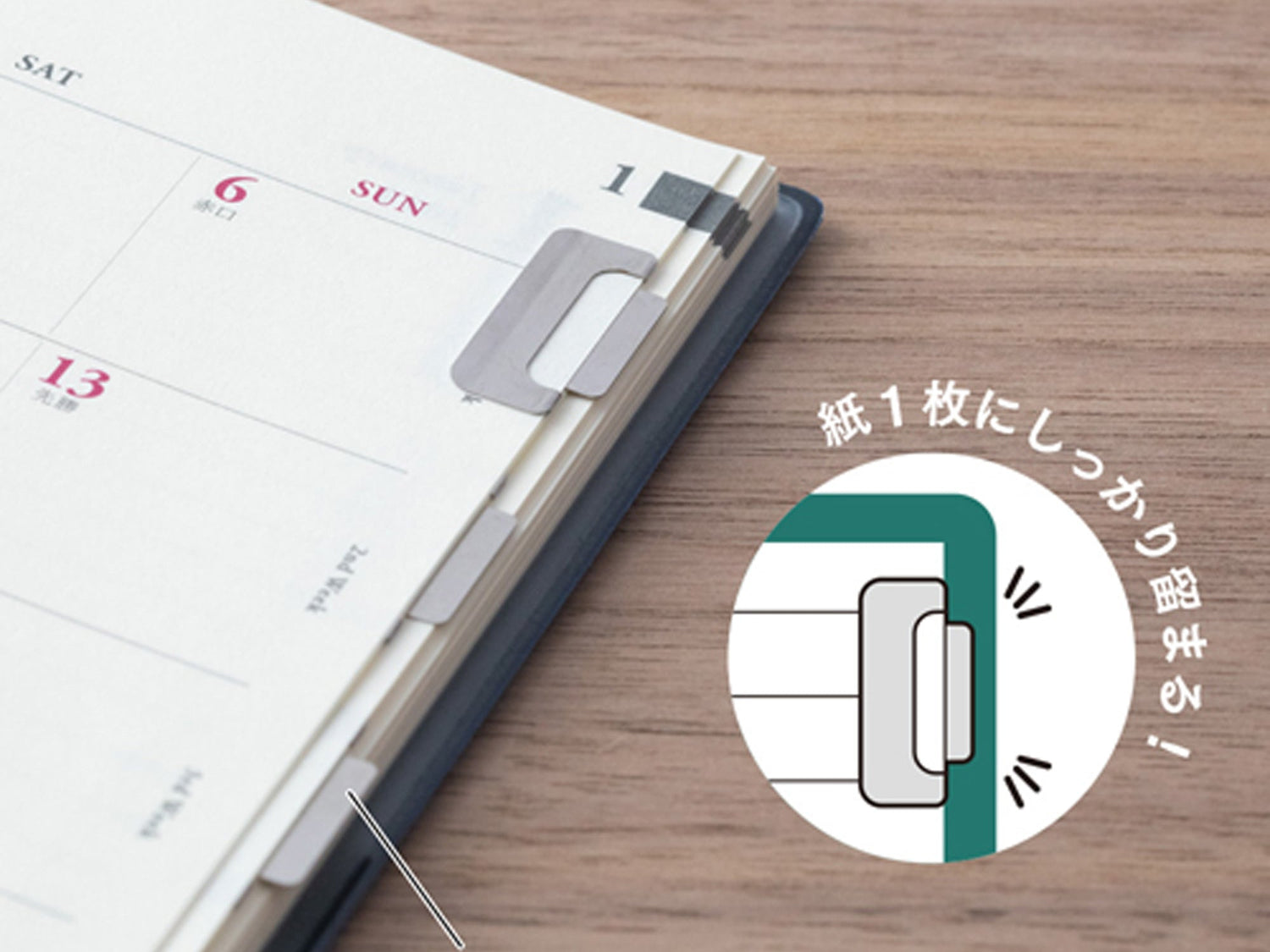 Midori Chiratto clips hold firmly to a single sheet of paper. They are made of extremely thin metal to mark your page in a planner or notebook. The simple design can be used either horizontally or vertically.