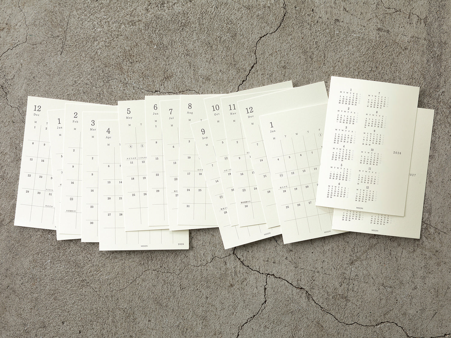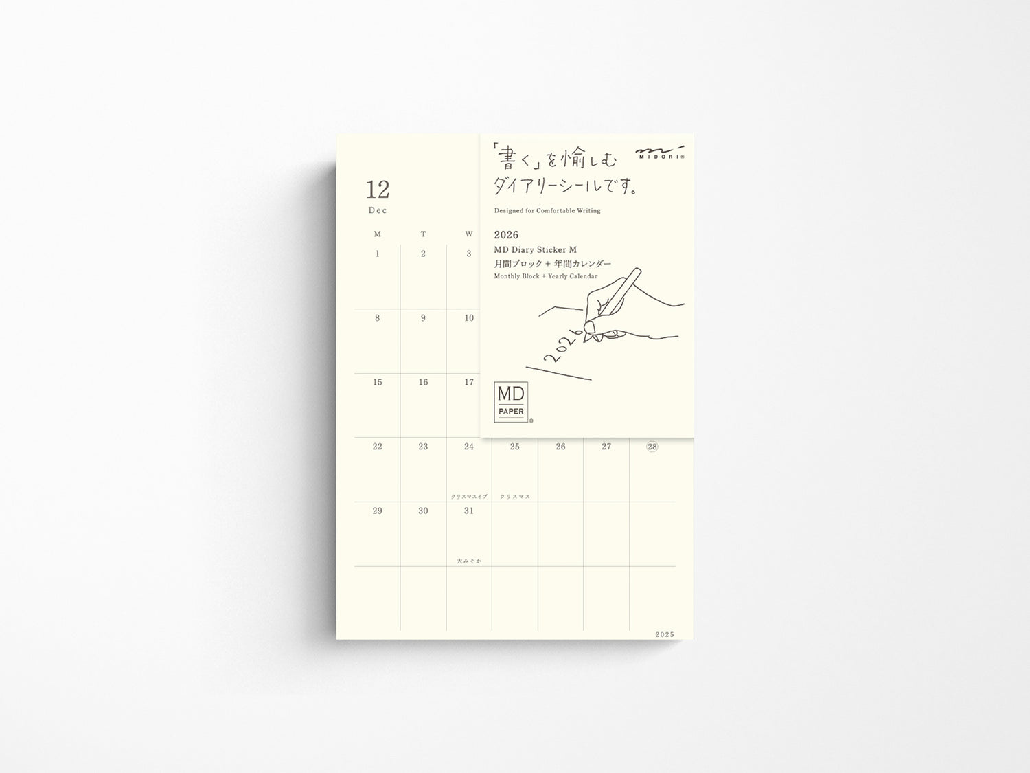 MD Diary Sticker contains 16 sheets total: 14 month-long calendars (from Dec. 2025 to Jan. 2027) and two year-long calendars (2026, 2027).