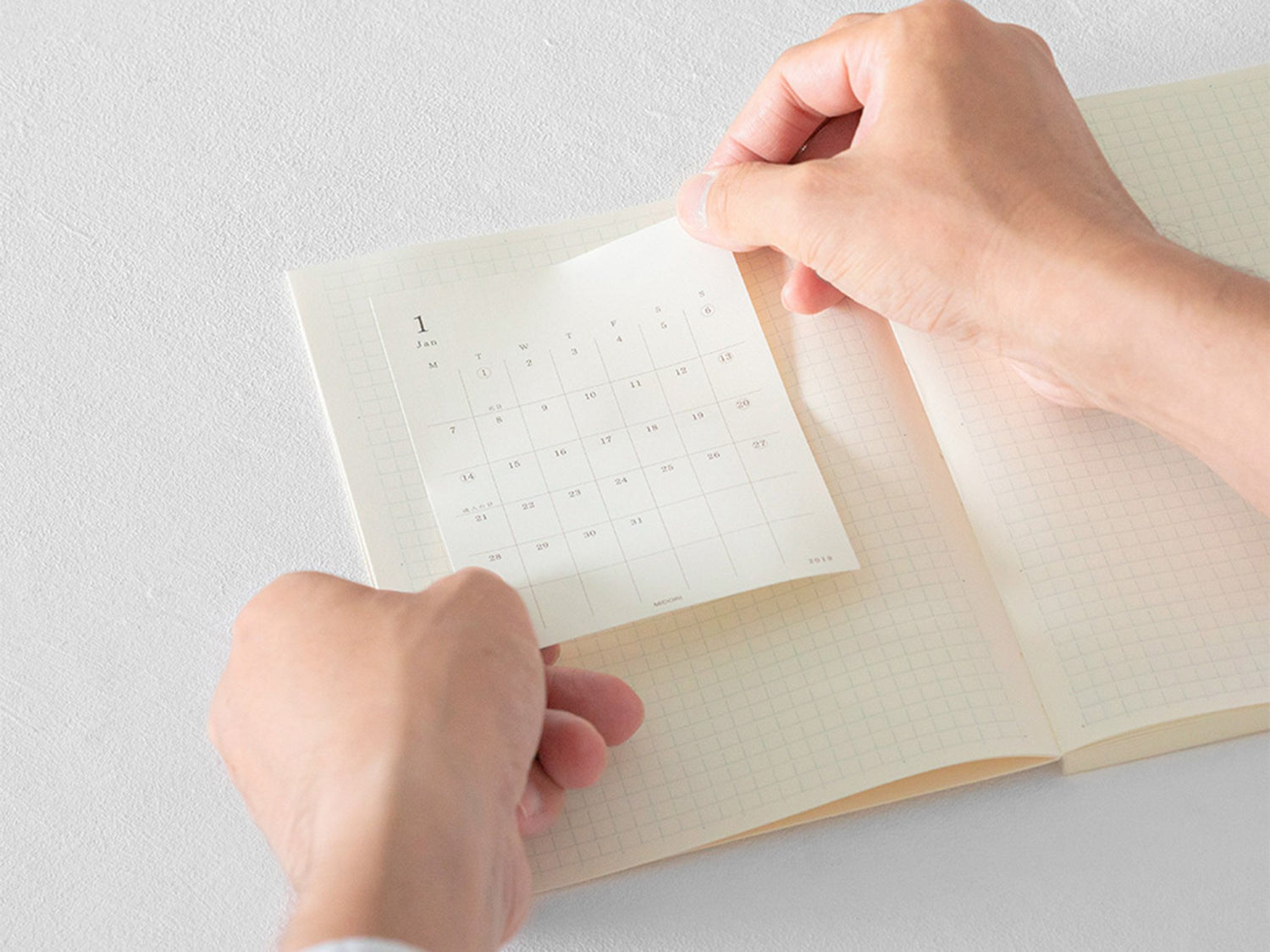 The MD Diary Sticker set for 2026 allows you to use any notebook as a planner. Simply peel and stick the monthly grid layout sticker and your plain page becomes a useful planning tool.