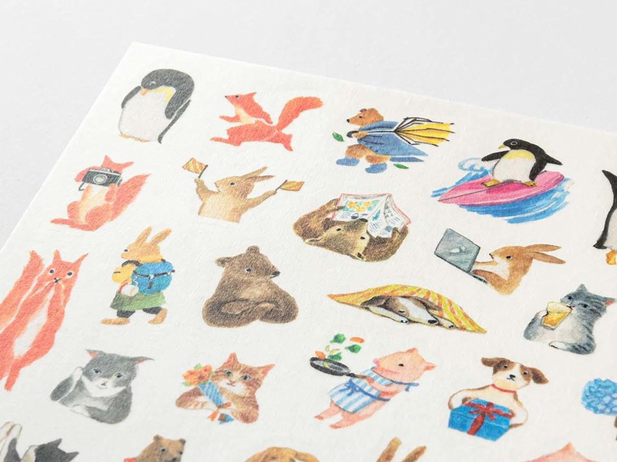 Stickers for Midori Yuru Log. Yuru Log is a new notebook series developed so that anyone can easily relax, have fun, and continue writing their daily records. These stickers are not only for decoration, but can also be written on with water-based pens thanks to a special coating applied to the surface of the Japanese paper.