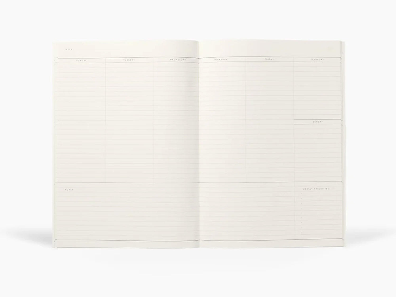 The layout is horizontal columns and the planner contains 23 undated weekly spreads. It captures all your weekly to-do's and provides the overview that you need. There is also room for notes and your must do's of the week.