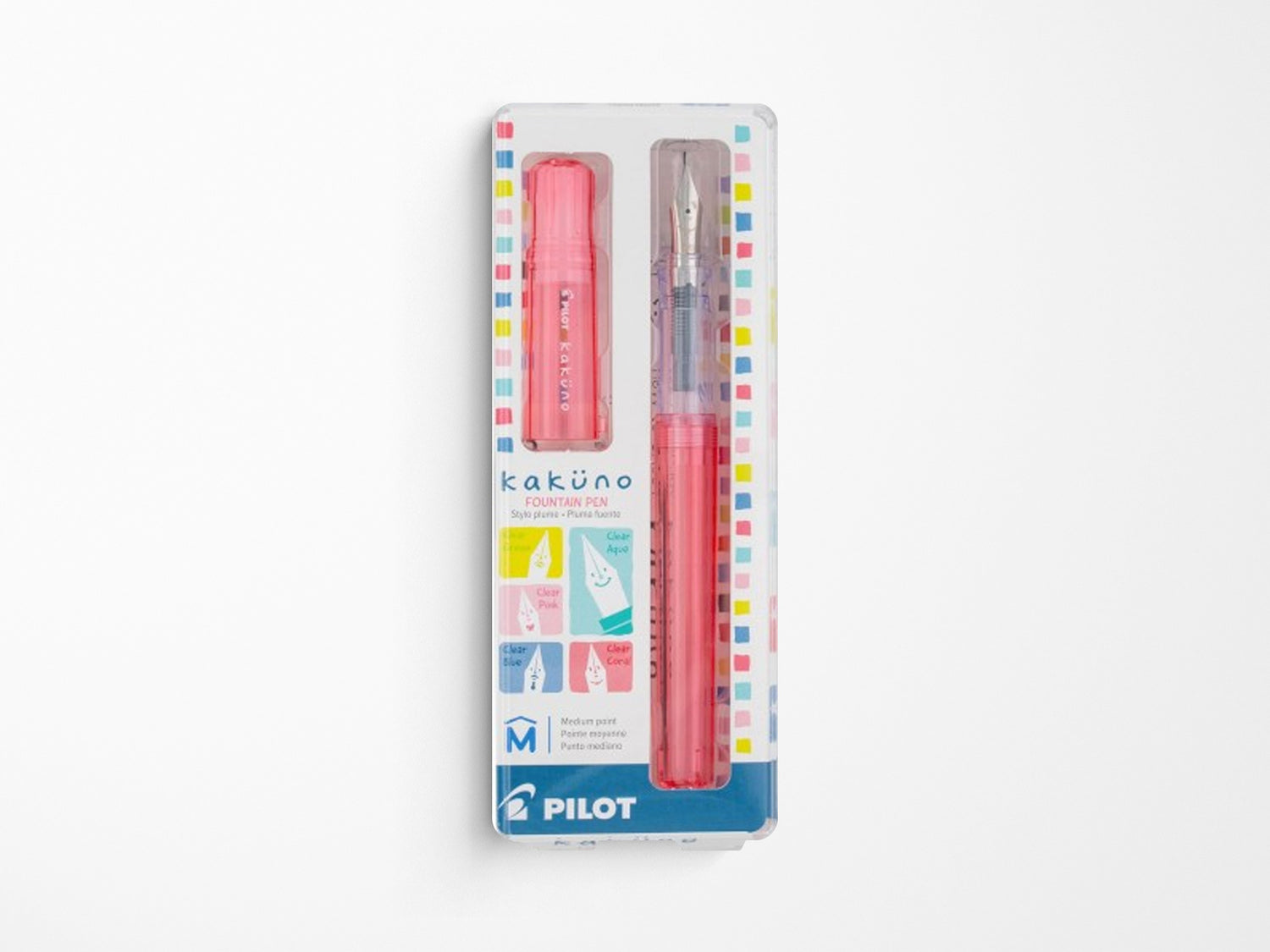 The Kakuno Fountain Pen from Pilot features a transparent coral body, a twist-off cap, and a flexible steel nib. Writing with a fountain pen allows a greater degree of creative expression, and changing out the ink colors is fun!