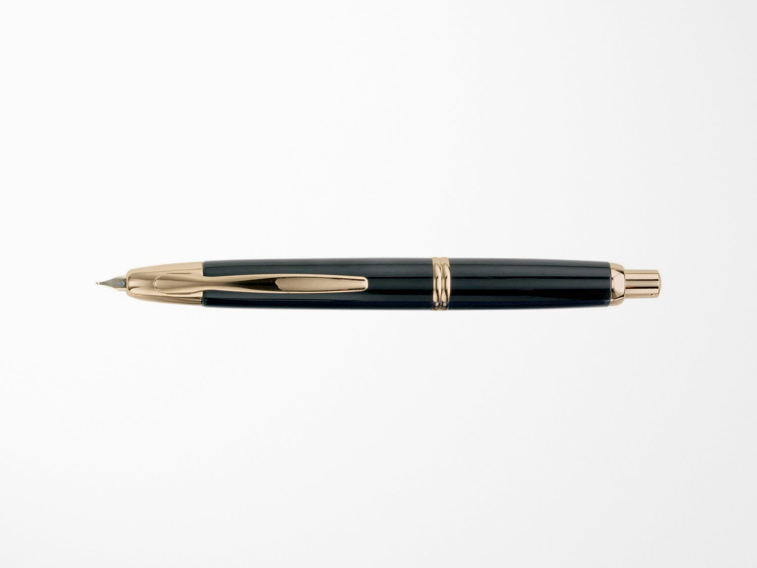The internal mechanism of this exceptionally crafted fountain pen allows the 18-karat gold nib to retract fully into the barrel when not in use. Vanishing Point is refillable for continued use with a cartridge or Pilot's CON-50 converter. The nib extends with a push of the button on the end, extending just enough to provide a svelte and luxurious writing experience.
