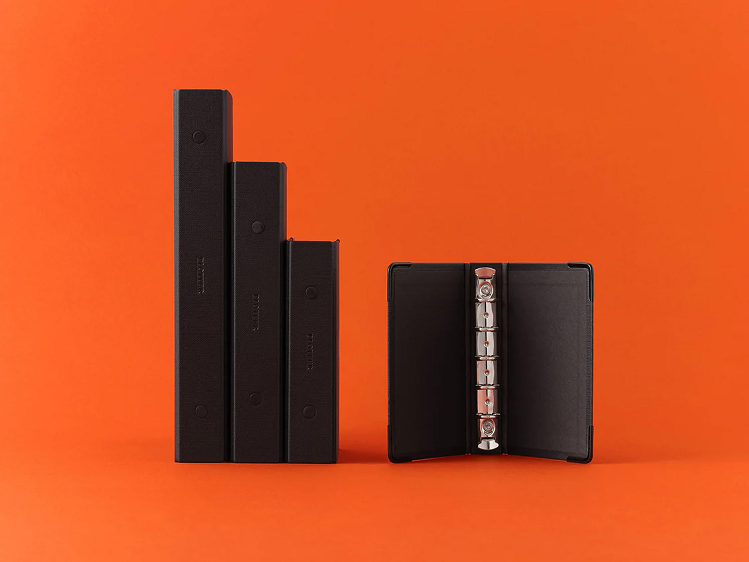 The cover of the Refill Storage is made with durable and stain-resistant cross paper, reinforced with black corner hardware. The cover also features a foil-stamped PLOTTER Original circle mark. You can maximize the functionality of a Refill Storage by organizing and categorizing archived pages with the Project Manager Accessory Refills.