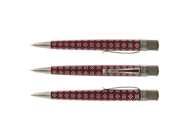 Harriet Tubman is one of America’s most iconic figures, inspiring generations. In the face of unrelenting danger, Harriet Tubman courageously risked her own life, traveling countless miles on the Underground Railroad to help other slaves find freedom and "never lost a passenger." This Tornado rollerball pays homage to Harriet Tubman. The design reproduces the pattern from a headscarf in one of her most well-known photos. The stainless barrel has a lightly textured base coat with pattern printed on top and is finished with antique silver trim and her portrait on the finial. Each pen is packaged in a commemorative tube. May all who write with this pen be moved by Tubman's daring, courage and generosity.