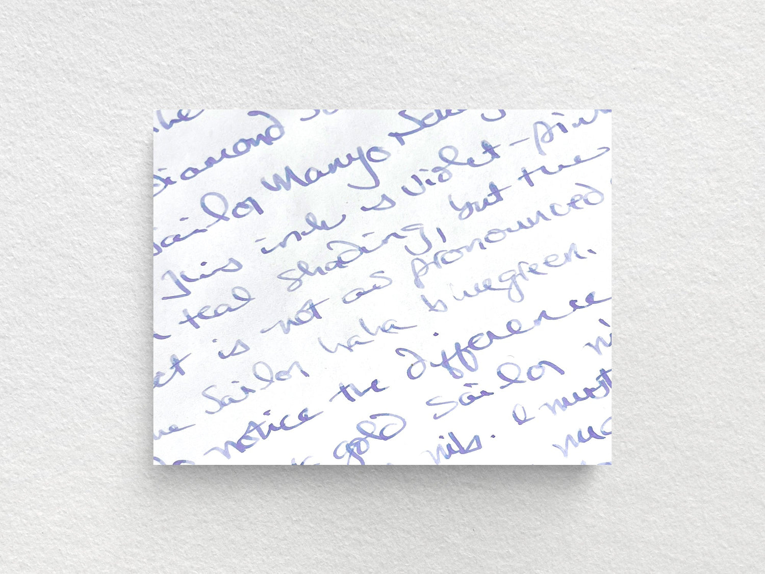 Sailor's Manyo bottled ink series is inspired by the variety of flowers mentioned in the ancient Japanese Manyoshu poems. Manyo inks are dual-shading, meaning the colors shift in areas of heavier coverage, giving a watercolor effect.