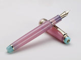 Japan observes the changes of time with celebrations for the spring and autumn equinox, and the summer and winter solstice. The Sailor Professional Gear Slim Solar Term Series shines a light on some of the finer traditions beloved across Japan on these special seasonal days. The Hagi Fountain Pen captures the spirit of the autumnal equinox with colors inspired by the autumn bush clover: a soft petal pink capped by seafoam green finials.