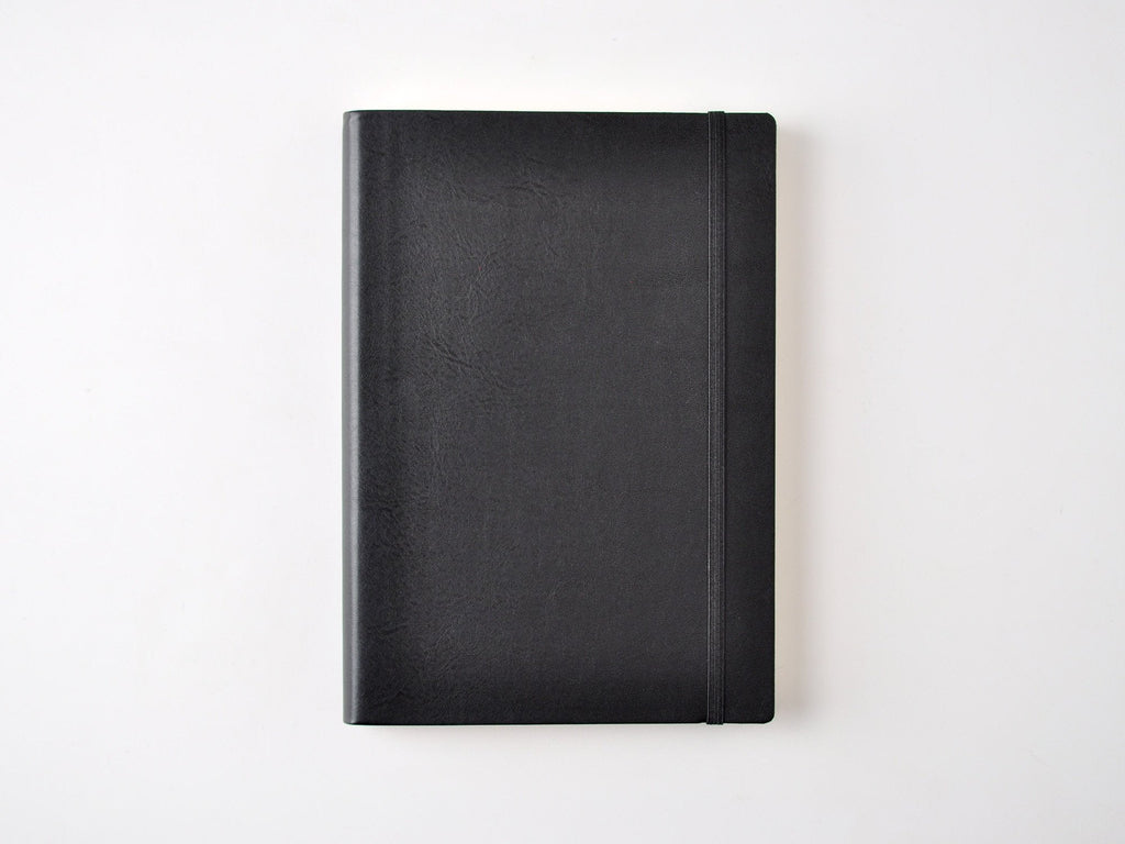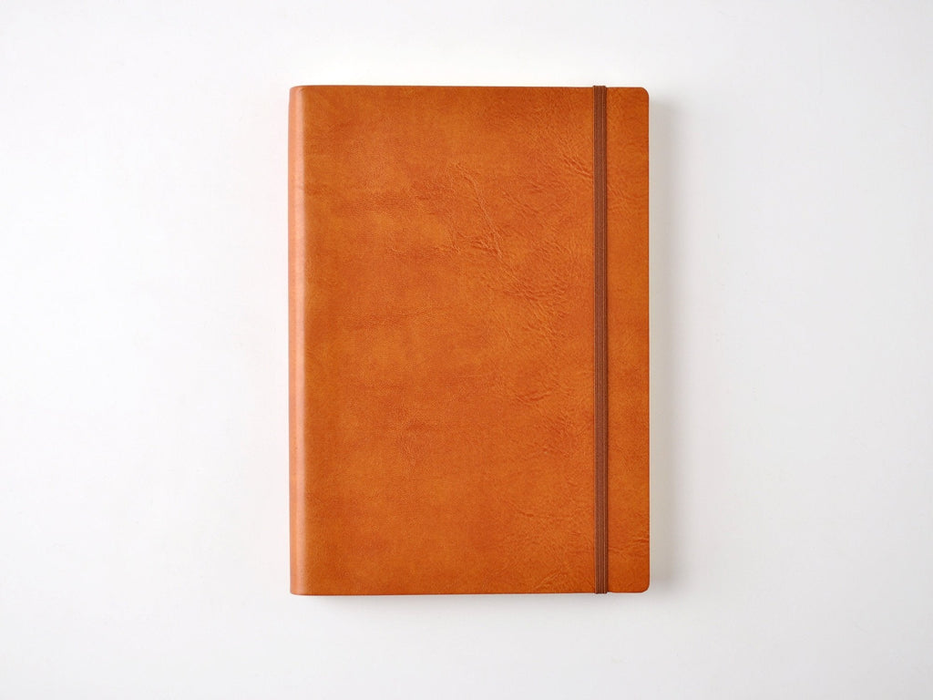 Our Italian Leather notebook is A5 sized, comfortable for note taking, list making, journaling, and writing of all kinds. The soft recycled leather cover is flexible. Bright white ruled pages have a light cotton texture.
