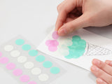 Masking circle sticker that is ideal for headings and classification. Using thin and durable Japanese paper material, we are particular about coloring and texture. By overlaying, you can enjoy a variety of color changes, so you can use it not only for classification and identification, but also for notes, decoration, and drawing (round sticker art).