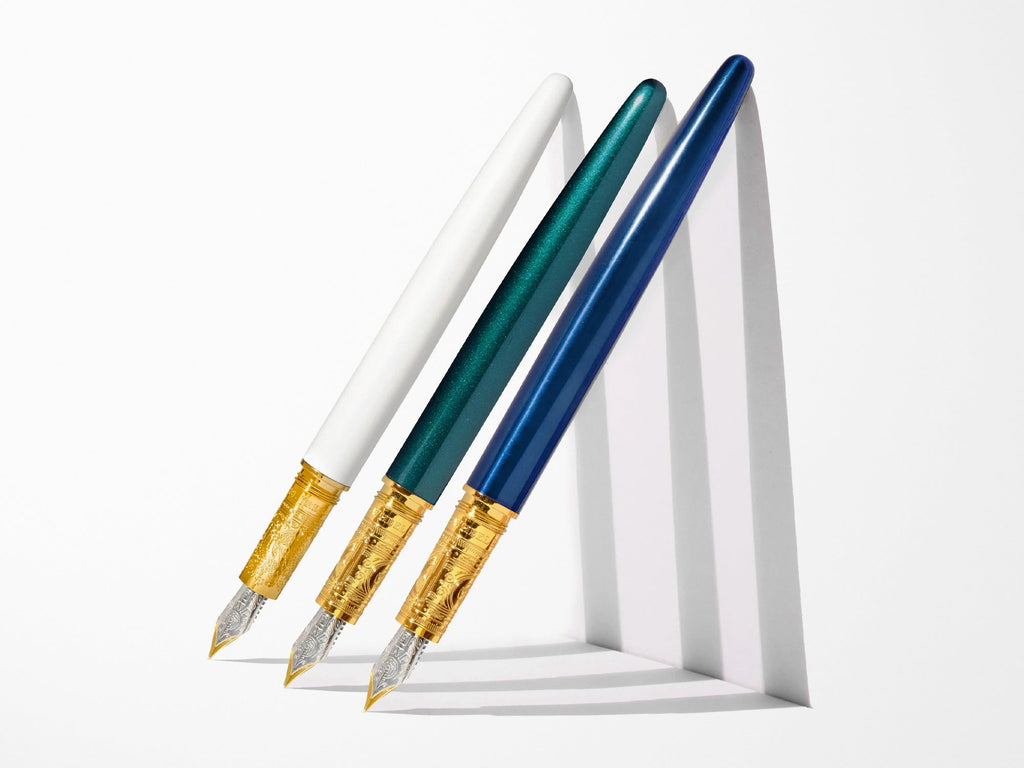- Nib: Two-Tone Stainless Steel #5 in Fine or Medium, removable feeder