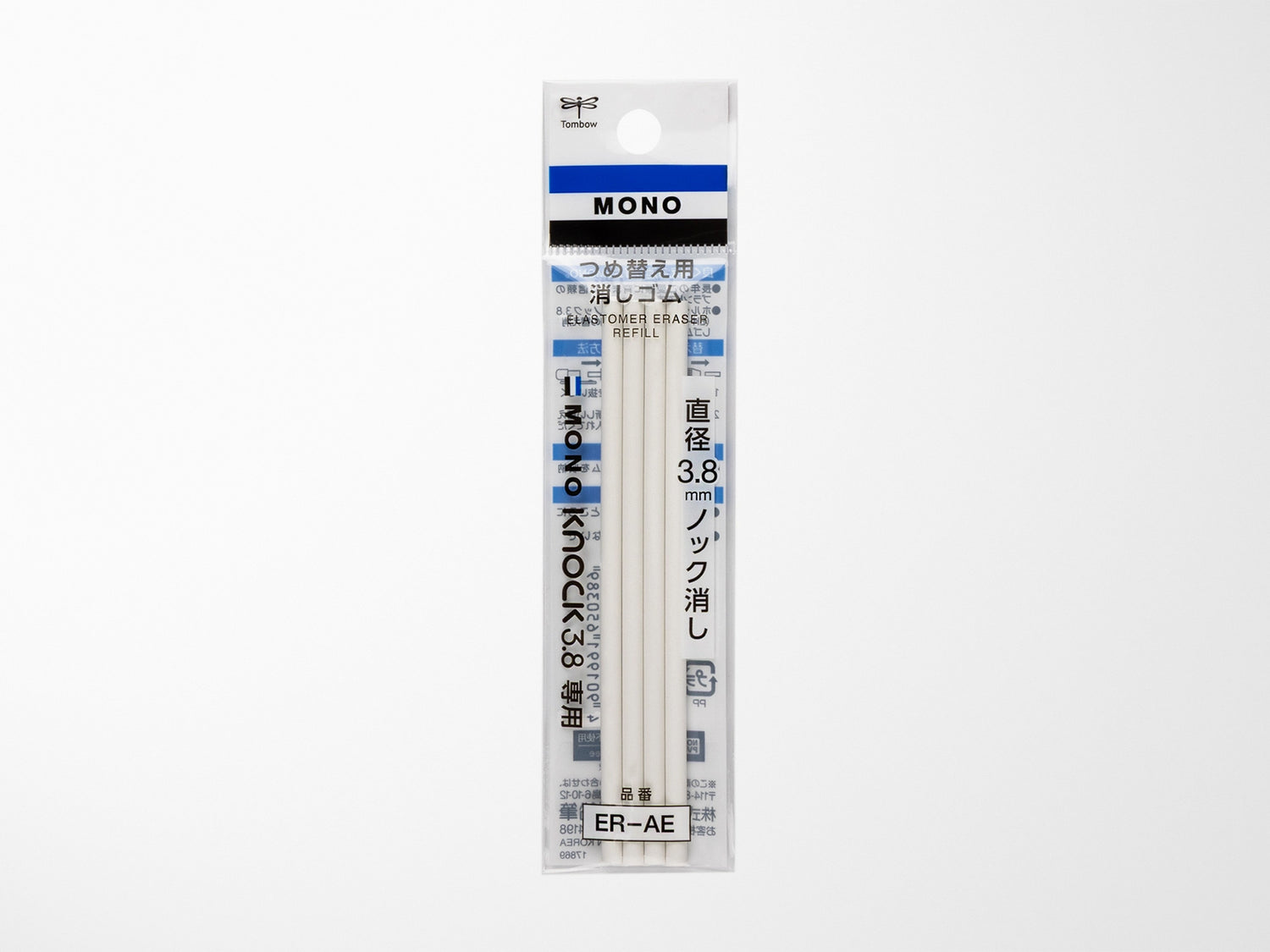 Refill erasers for the MONO Knock Eraser. The MONO Knock eraser has a pen-style body that is easy to use and store. Convenient clip for on-the-go corrections.