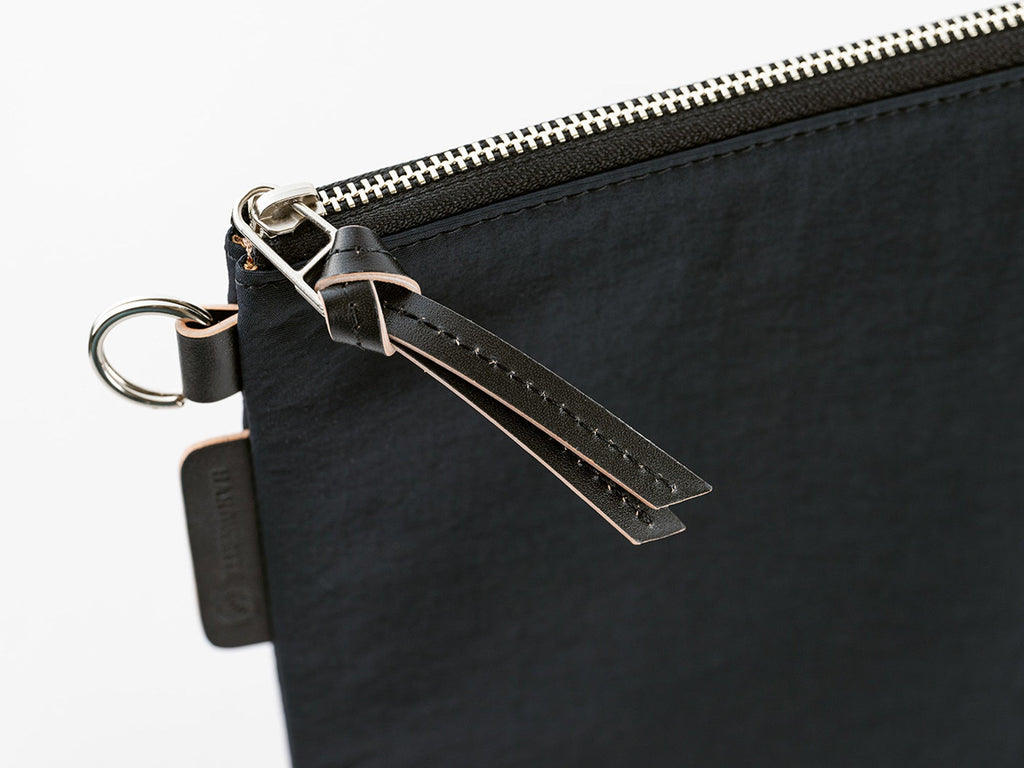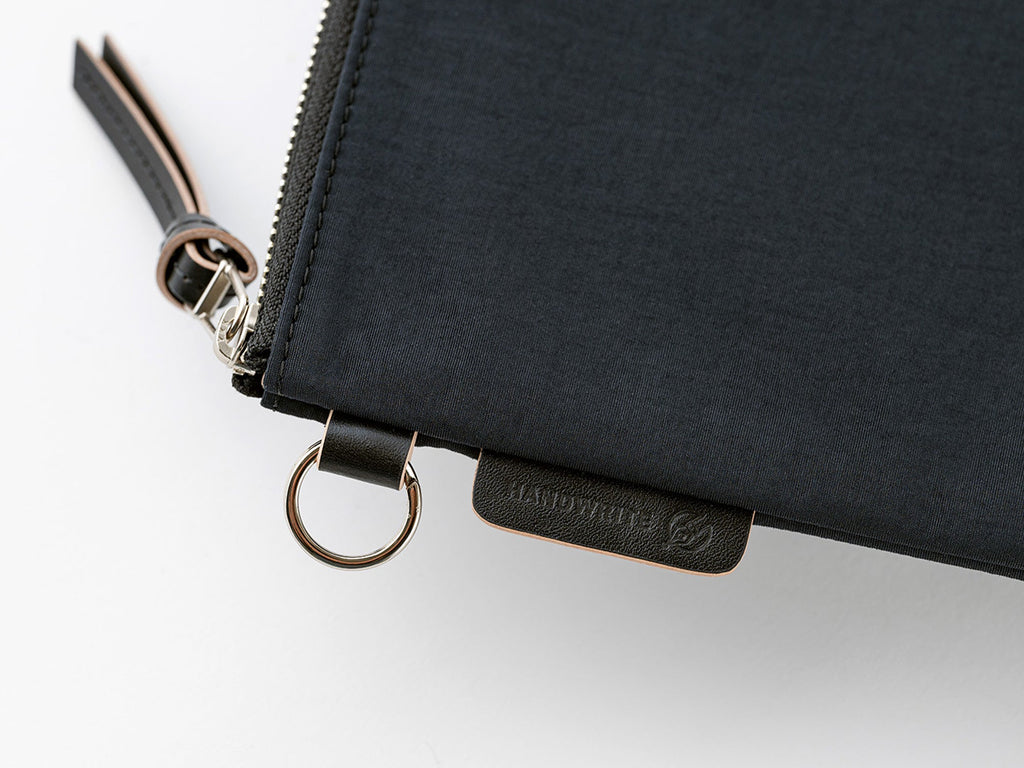 This flat pouch can store an A5 size HON. The L-shape zipper opens the pouch extra wide for easy access. This pouch is nice and light to hold and is made with the same material as the tragen cover, which uses a soft nylon with an elegant sheen.