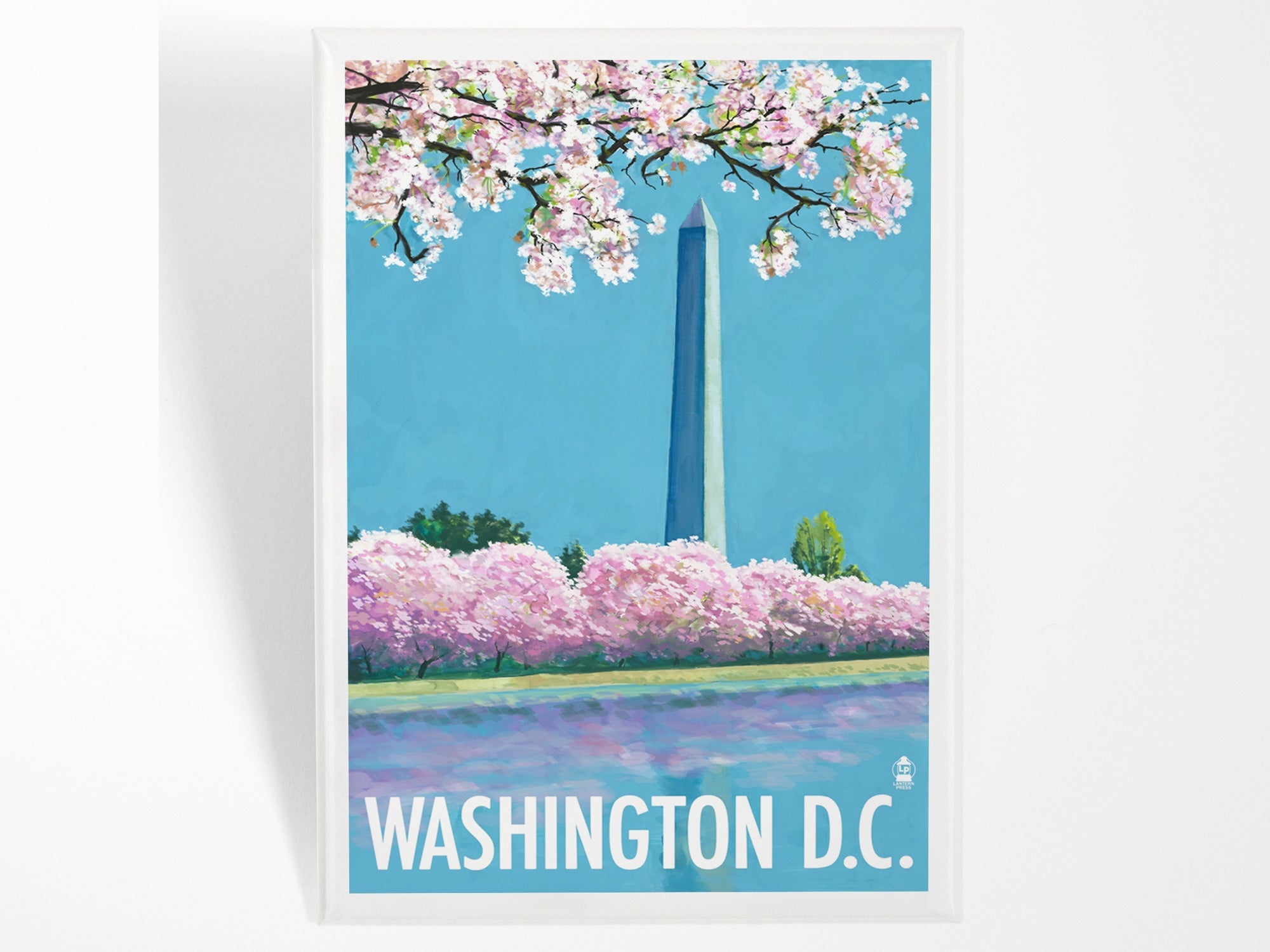 Washington Monument Watercolor Cherry Blossoms Magnet