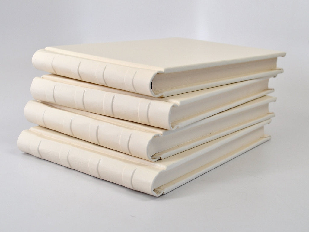 Our handcrafted White Italian leather guestbook is destined to become an heirloom, filled with messages from wedding guests. The guest book is hardbound in natural off-white leather which has been hand-rubbed and polished for a glowing sheen and subtle patina. Pages are ivory laid, lined, and acid-free. Enough room for hundreds of signatures.